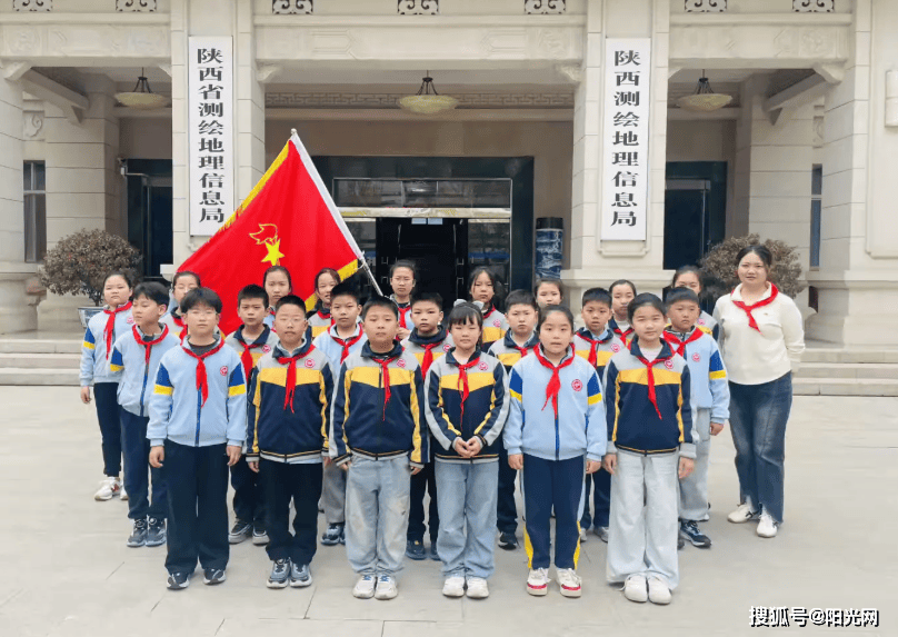 活动开展前,学校少先队辅导员开展行前动员,向队员们讲解清明节缅怀英烈的深刻意义,叮嘱大家以崇敬之心聆听英雄故事、感悟英烈精神,在研学中汲取奋进力量,争做新时代好少年。动员结束后,少先队员们身着整齐校服,佩戴鲜艳红领巾,高举少先队队旗,精神饱满、井然有序地前往陕西省测绘地理信息局,少年们的蓬勃朝气与庄重神情,尽显对革命英烈的无限敬意。 ' \; J. z% h2 d3 t9 i